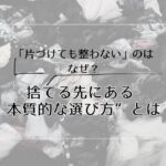 HOME >サステナビリティ サステナビリティ 家を整える 思考の整理 整える・仕組み化・最適化 「片づけても整わない」のは、なぜ? 捨てる先にある“本質的な選び方”とは 2025/10/2 サステナビリティ, 持続可能性 片づけ=捨てる、だけではない 「片づけ」と聞くと、多くの人がまず思い浮かべるのは 「捨てる」という行 ...
